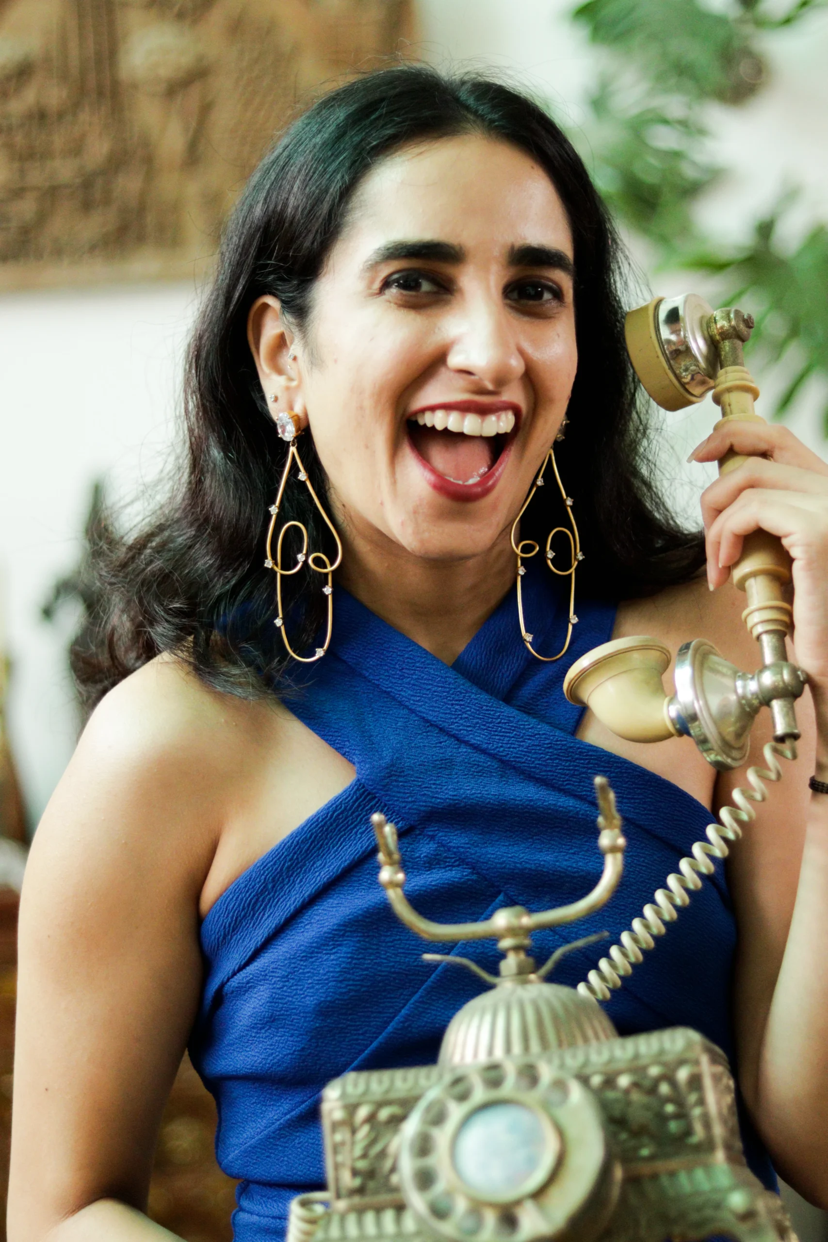 Handcrafted in gold-finished brass with glinting crystals that add a hint of sparkle, the Muse Lines earrings are modern, fluid, and unapologetically you.