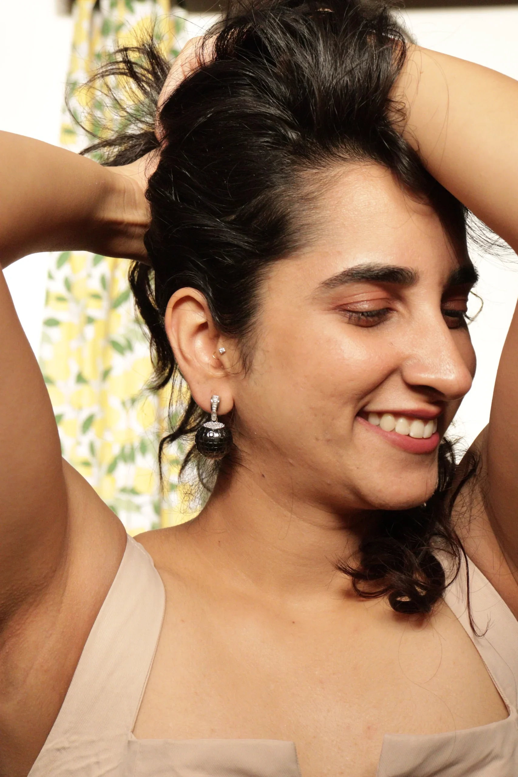 The Disco Ball Drops are bold, magnetic, and endlessly versatile. Crafted in deep black Swarovski stones cut in a mosaic pattern, these earrings shimmer subtly like city lights on a midnight drive. Whether you’re headed to a candle-lit dinner or dancing under stars, these earrings catch the light — and the mood — just right.